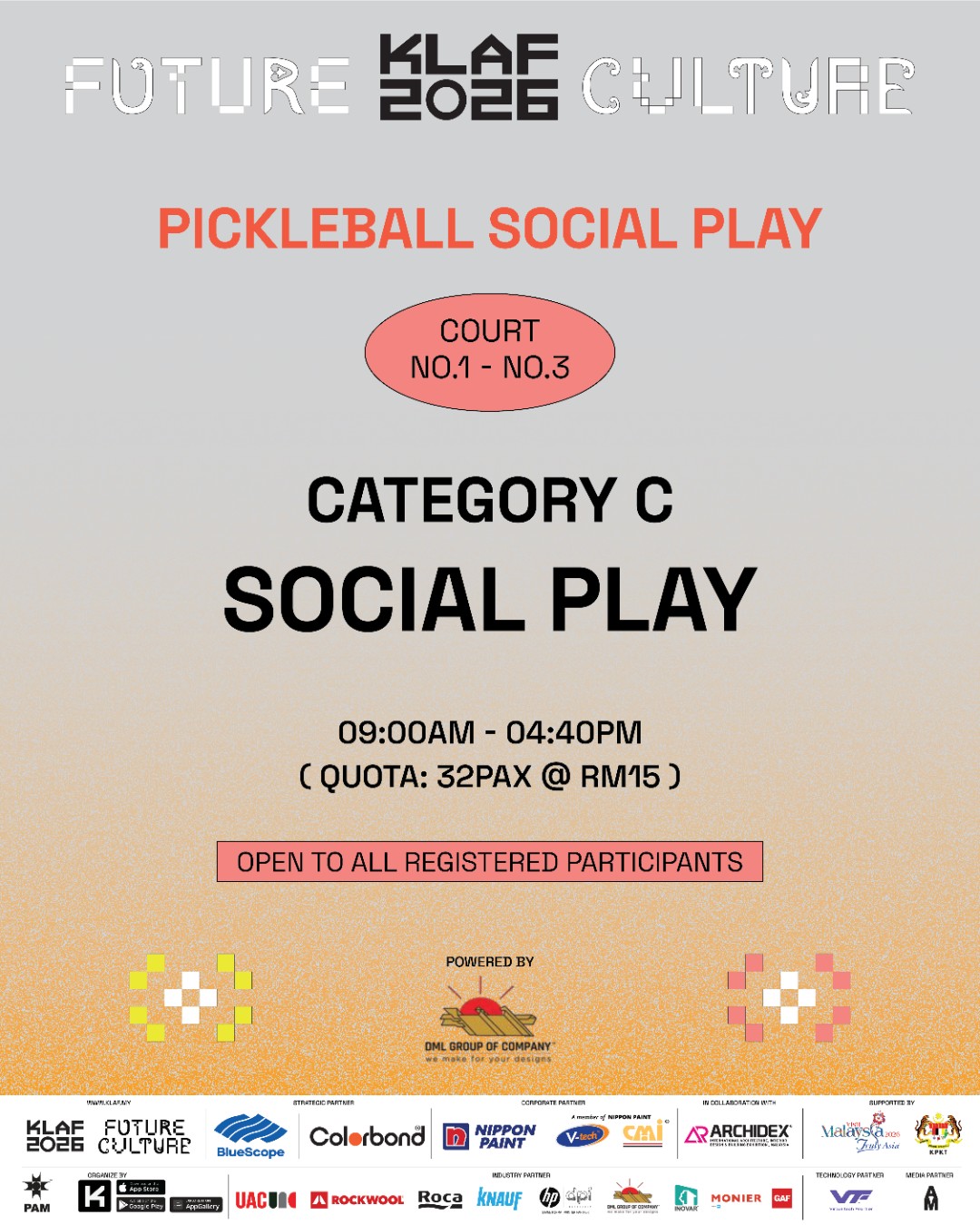 Dink! Pickleball Daily PJ perfectly captures KLAF 2026's "Future Culture" as a vibrant hub where architects converge through sport. This collaboration, expertly organized by DML, exemplifies placemaking by transforming recreation into a social movement. DML's seamless coordination unites the architectural fraternity, fostering professional connection through active play and setting a new benchmark for celebrating Malaysia's evolving urban lifestyle.