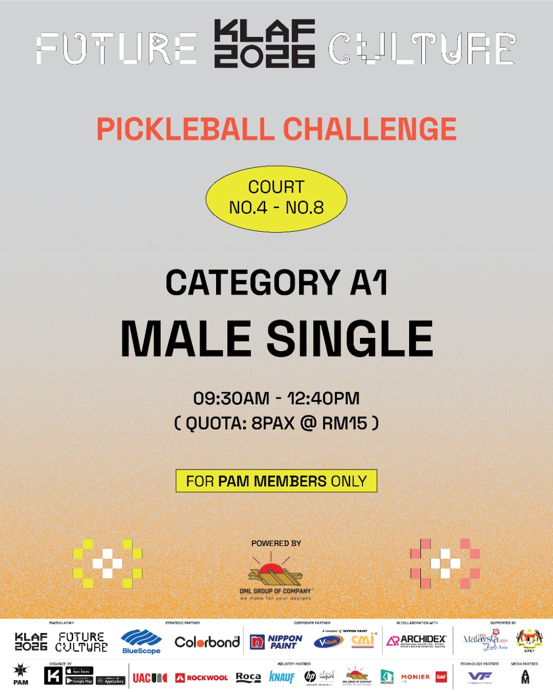 KLAF x DML Pickle Ball Challenge Category A – Male Single