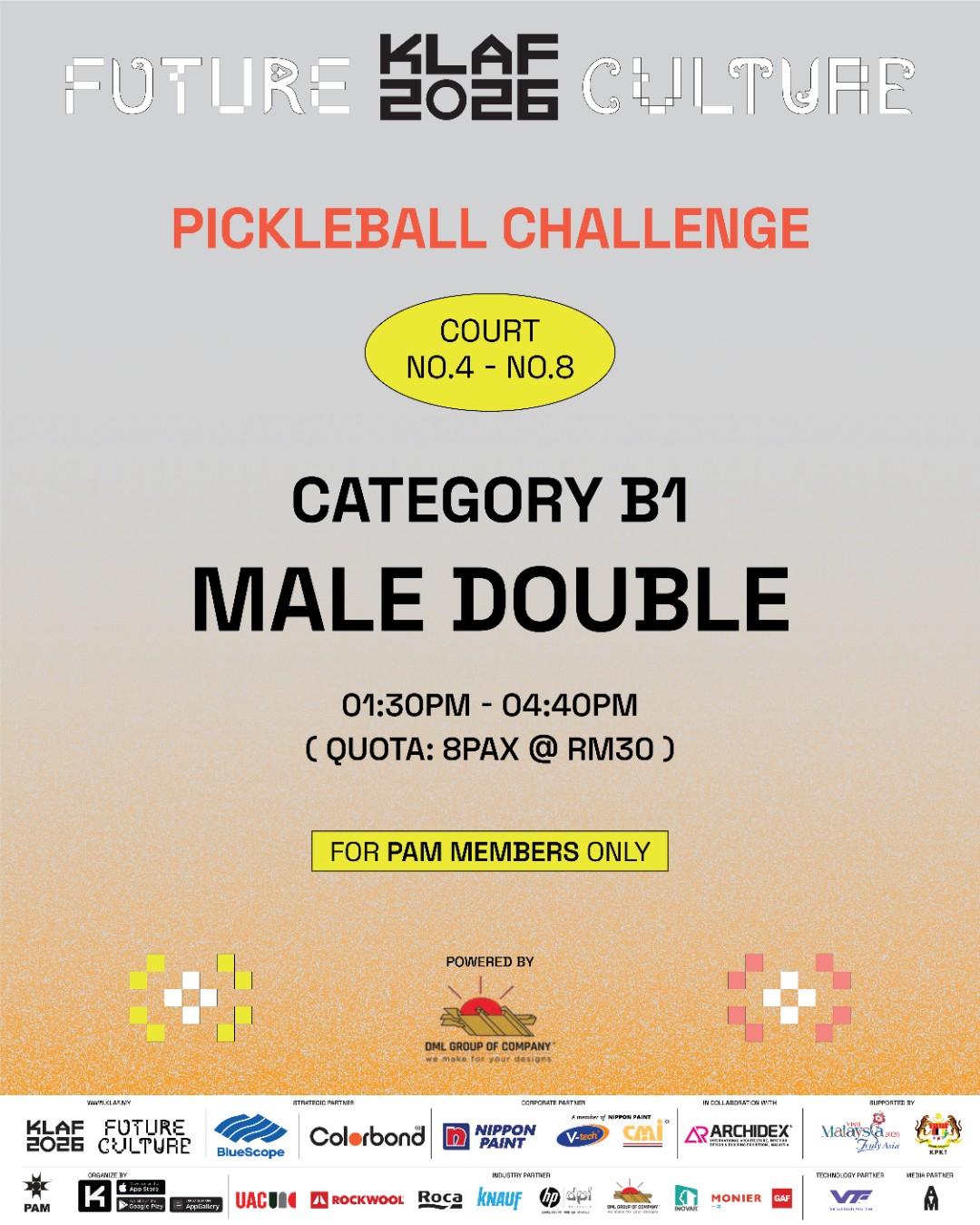 KLAF x DML Pickle Ball Challenge Category B – Male Double
